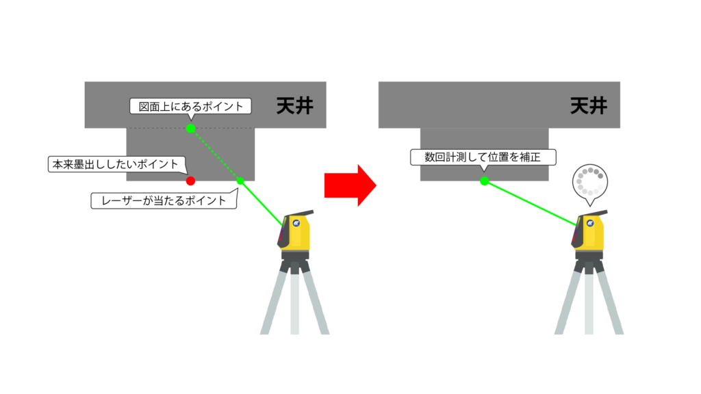 所や天井付近での墨出し作業など、建築現場での利便性がさらに向上しました。